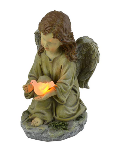 Beguiling FAIRY GARDEN DECORATIONS: this open-air garden stylistic layout statue is a sun-powered fueled LED garden-style in a heavenly attendant and bird plan; the point is holding a pigeon that gleams during the evening in white LED light to add a mystical touch to the earth